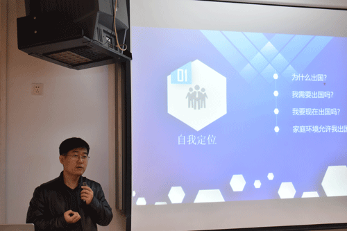 顾林彬为大家详细讲解了《信息学院学生参加托福、雅思等外语水平考试资助方式暂行办法》中的资助政策,并鼓励有留学目标的同学们早做准备和规划,争取实现出国深造的梦想。最后,在场老师与同学们互动交流,针对提出的问题做了详细的回答,并将有留学意向的学生建群,以便后期分享资料,互帮互助。