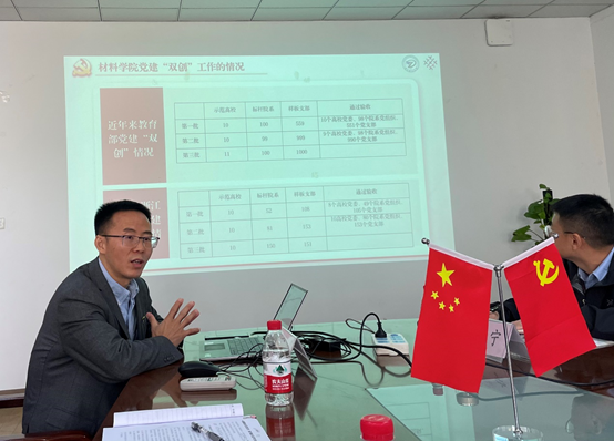 材料学院党委副书记周照东作《加强学院基层党建的实践与思考》专题报告。他首先介绍了材料学院党建“双创”工作情况,围绕材料学院院系设置、“标杆院系”建设总体思路,具体结合班子建设、政治建设、思想建设、组织建设和品牌建设五个部分就如何开展好党组织建设进行了展开介绍;随后分享了高校基层党建工作的路径与方法探讨,就紧抓一个导向、精心打造“家文化”、深化党建“四个融合”等特色工作进行了建设经验分享。
