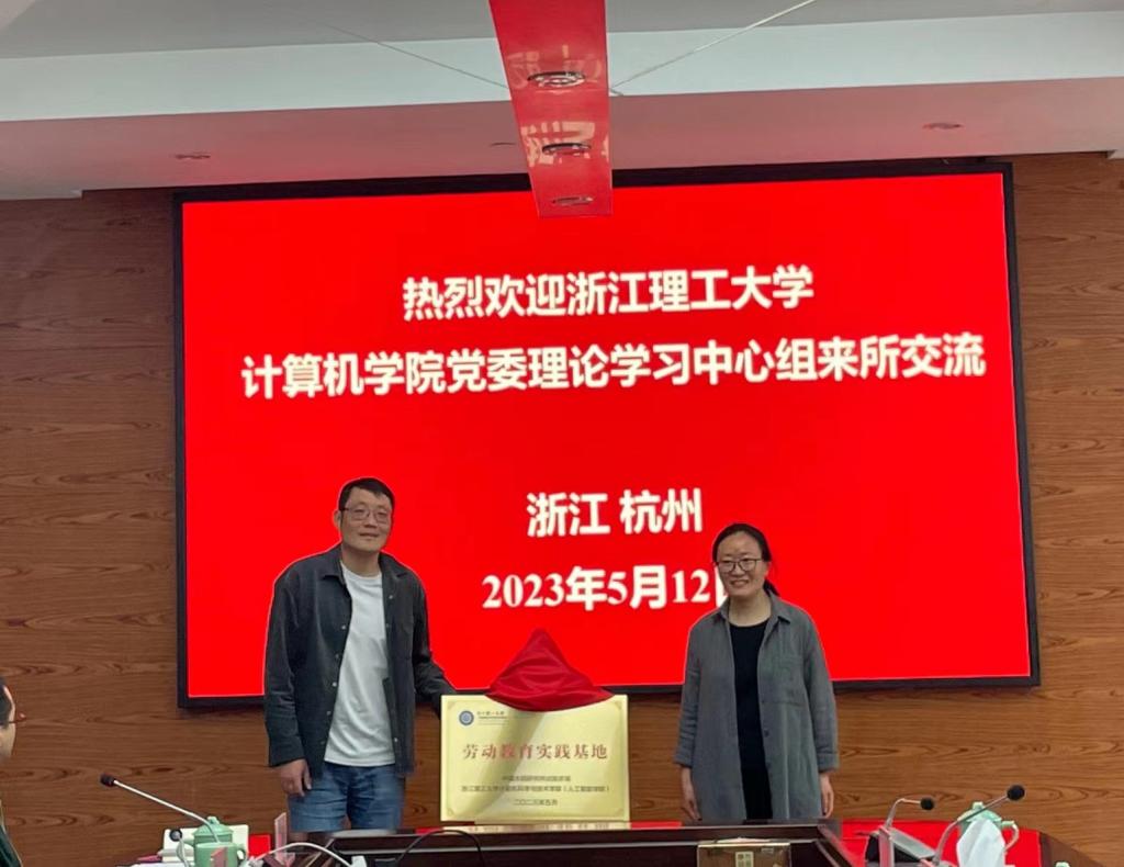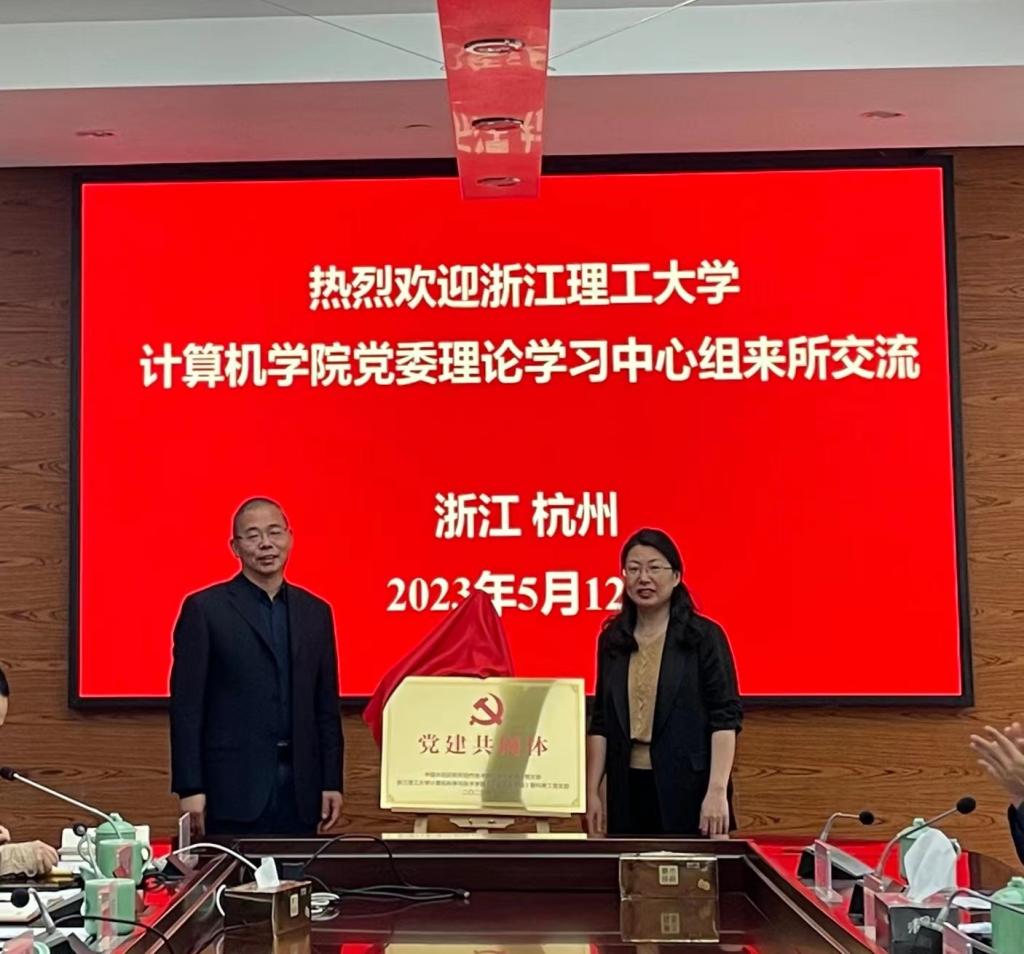 在中国水稻研究所,李国荣副所长对计算机学院一行的到来表示欢迎并介绍水稻所相关情况,计算机学院院长丁佐华对学院情况作相关介绍。同时稻作技术研究与发展中心副主任、党支部书记王丹英,计算机学院党委副书记丁宁共同交流了本单位主题教育的开展情况。此外,在前期沟通和以往合作的基础上,双方签订党建共同体和劳动教育实践基地,会议中双方党支部书记签署了协议,并分别由中国水稻研究所办公室主任徐亲阳、计算机学院党委书记黄黎为党建共同体揭牌,中国水稻研究所试验农场副场长(主持工作)徐春春、计算机学院副院长姚青为劳动教育实践基地揭牌。