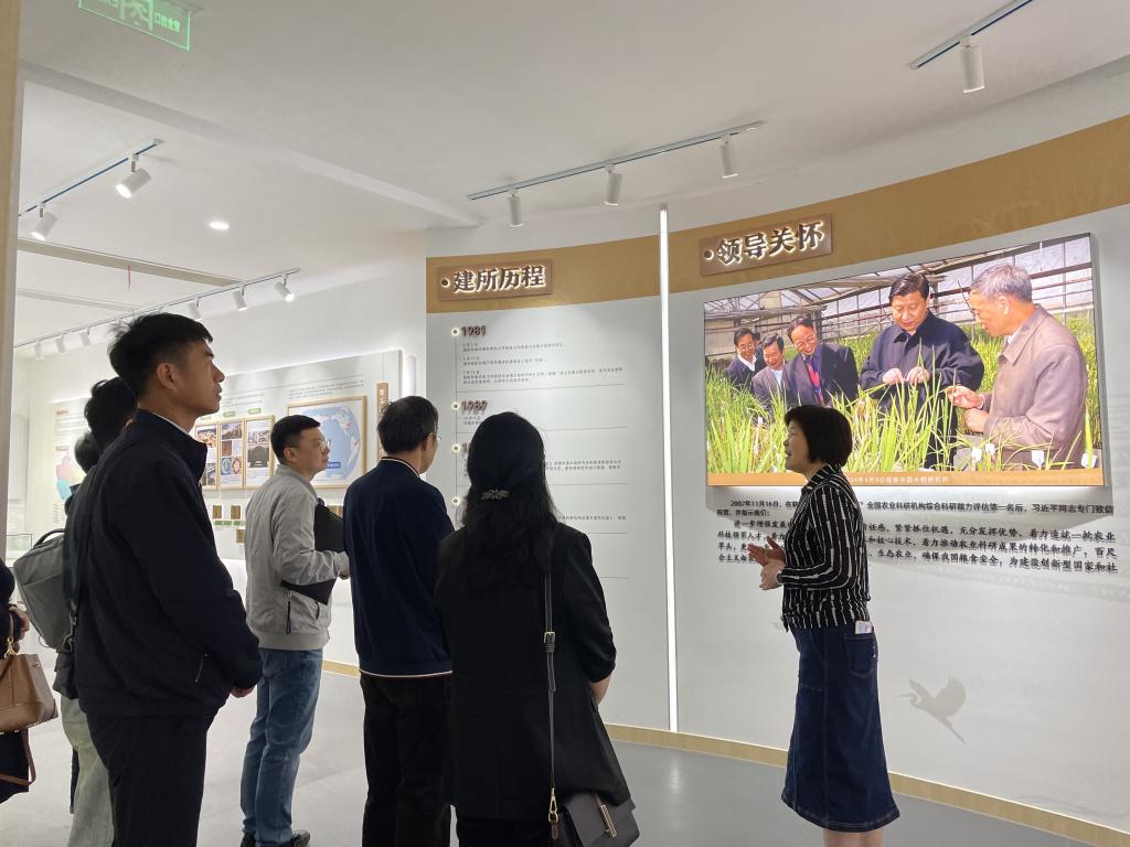 交流会结束后,一行人共同参观了水稻研究所成就展厅。在展厅中陈列了习近平同志2004年4月视察中国水稻研究所的照片和相关重要指示批示,生动展示了中国水稻研究所干部职工认真贯彻落实习近平总书记贺信精神、坚持四个面向(面向世界科技前沿、面向国家重大需求、面向经济主战场、面向人民生命健康)团结协作,奋力攻关的光荣事迹和突出成果。后续,双方将继续在智慧农业、水稻飞虱预报防治、大学生劳动教育等方面开展深入合作。