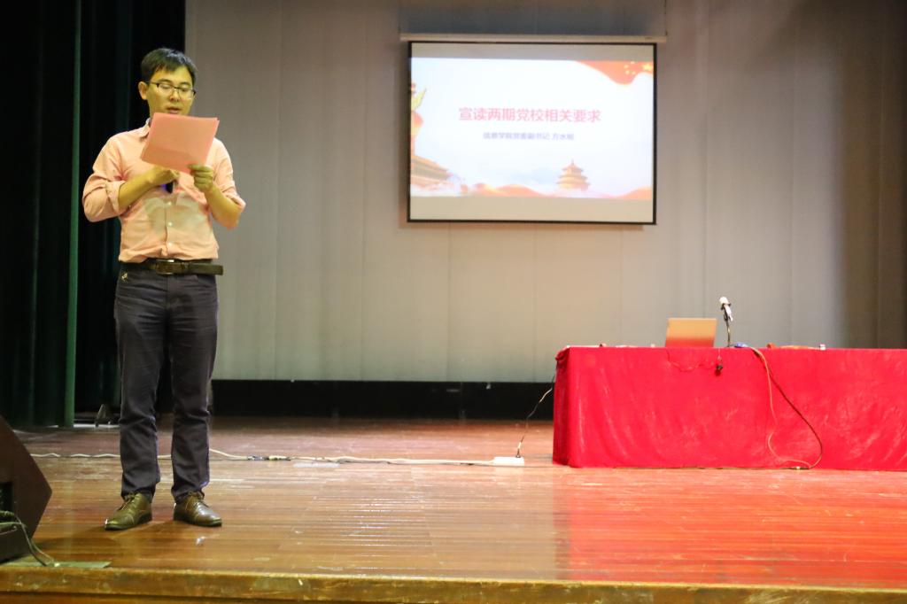 开班仪式在雄壮的《国际歌》声中拉开序幕,方水明带领全体预备党员培训班成员进行入党宣誓,洪亮的宣誓声表达出预备党员们对党的热爱及全心全意为人民服务的强烈决心。随后,他宣读两期党校相关要求,再次强调党校培训的考核标准与组织纪律。两期学员代表李涛代表全体预备党员表态:要主动学习,端正态度,加强党性锻炼,提高党性修养,严守纪律和政治规矩,从思想上、作风上、行动上入党,争做一名优秀党员的决心。