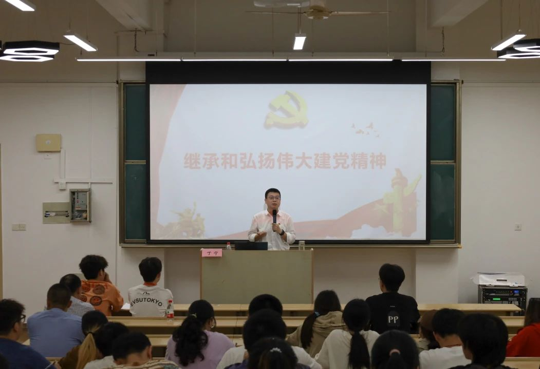 本次党课的主题是“在新时代如何继承和弘扬伟大建党精神”。首先,丁老师从中国共产党人的精神谱系引入。阐述了一系列重要精神:新民主主义革命时期的井冈山精神、长征精神等,社会主义革命和建设时期的“两弹一星”精神、雷锋精神等,改革开放和社会主义现代化建设时期的改革开放精神、特区精神等,中国特色社会主义新时代时期的脱贫攻坚精神、科学家精神等。