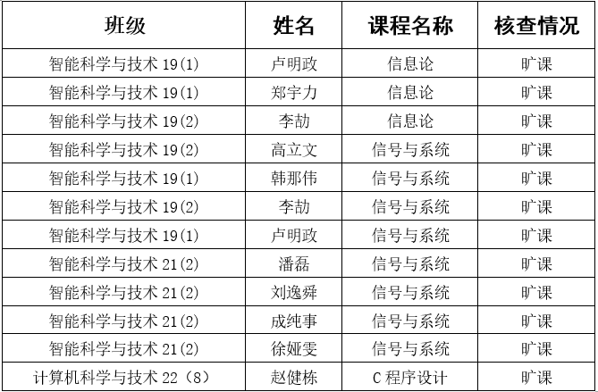结合学院学生工作办公室听课抽查,相关学生组织不定期抽查,任课老师点名,学习委员考勤等情况,对于相关违纪学生,学院将按照学生手册《tyc33455cc太阳集团成网官方入口学生违纪处分规定》第三十三条相关规定执行。《tyc33455cc太阳集团成网官方入口学生违纪处分规定》第三十三条具体:学生一学期旷课累计达10-19学时,给予警告处分;旷课20-29学时,给予严重警告处分;旷课30-39学时,给予记过处分;旷课40学时以上者给予留校察看处分。