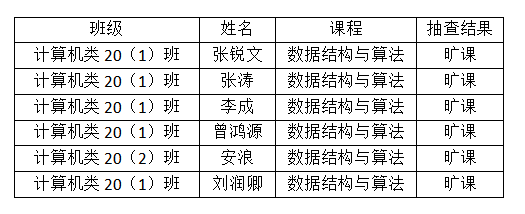 第11周我院学生工作办公室和学风建设指导中心会学习部对学生课堂出勤情况和学习表现进行了随机抽查,现将抽查结果通报如下。