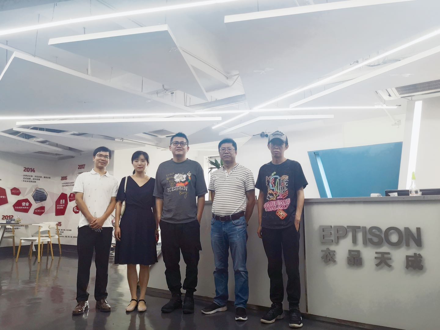 杜立江热情接待了母校领导老师们,他回忆大学时光的诸多趣事,介绍了公司自2008年起步至今的艰辛历程和发展态势,并与母校老师共同探讨了服装电商产业的未来前景和方向。