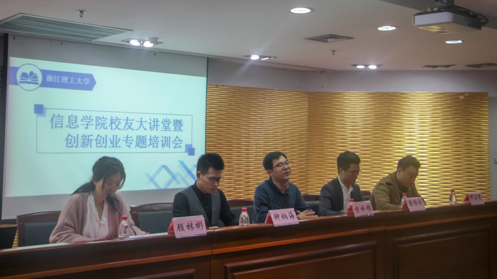 4月13日下午,信息学院校友大讲堂暨创新创业专题培训会在行政楼一楼报告厅顺利举行。本次活动邀请到我院2009级校友、杭州小英雄机器人培训机构创始人钟炳海和潘绍永作为嘉宾。我党委副书记方水明、校友联络服务中心主任尹小虎出席了本次专题培训会,我院创业致远班以及学习奋进班的同学们参加了本次会议。会议由创业致远班班主任顾林彬主持。