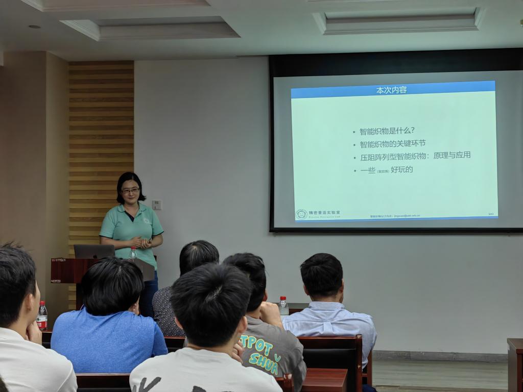 程敬原以幽默风趣的讲授方式结合生活中常见场景,由浅入深向大家介绍了可穿戴计算的研究范畴,并结合她的研究成果,阐述了可穿戴技术研究的热点问题、涉及到的相关学科、发展前景、产业化方向等内容。通过程敬原教授的介绍,使得大家对可穿戴计算、智能织物的发展方向有了初步的了解。