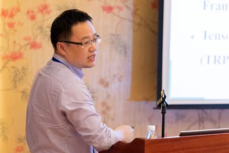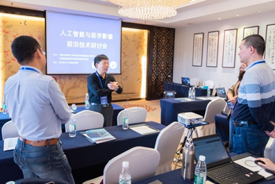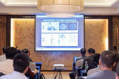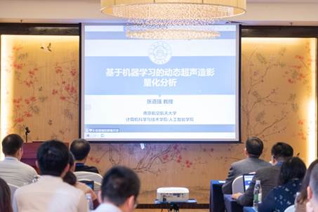 南京航空航天大学张道强教授在报告中对“基于最优传输的不规则呼吸运动矫正”、“基于模态融合的病灶边界识别”等基于机器学习的造影量化分析研究工作进行了详细介绍。