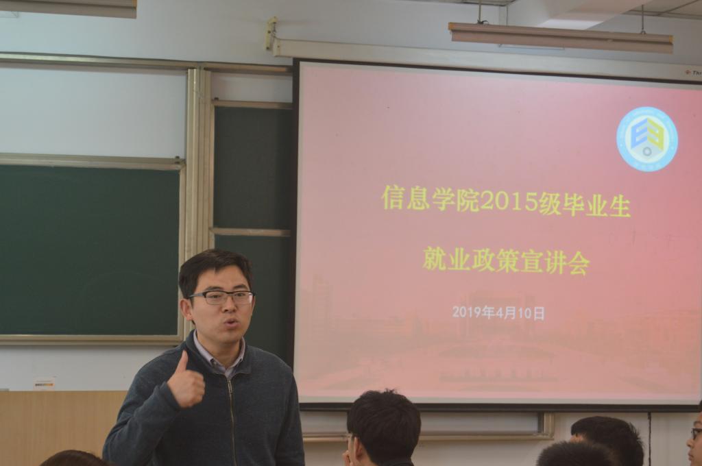 4月10日下午,我院在2N-106召开2015级毕业生就业政策宣讲会,院党委副书记方水明,15级辅导员黄诗莹,普开哈督普数据中心的徐军海出席会议。会议由王无双主持。