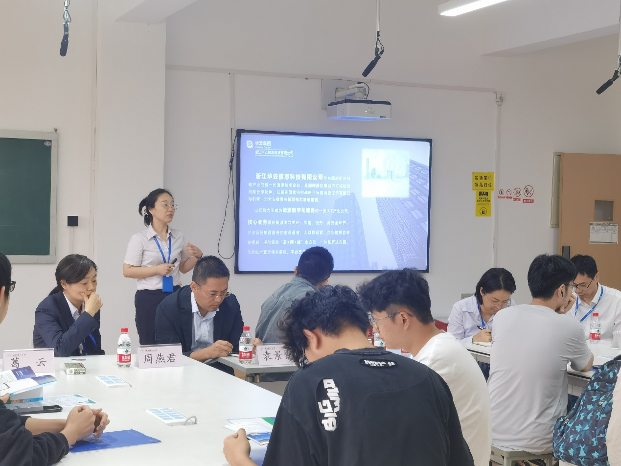 招聘宣讲会上,浙江华云信息科技有限公司各业务板块负责人介绍说明招聘计划、工作情况、岗位需求等情况,毕业生们在宣讲结束后纷纷递交简历,并就薪资待遇、职业前景等信息做进一步沟通。