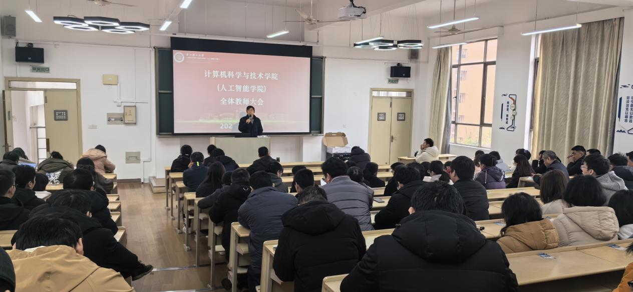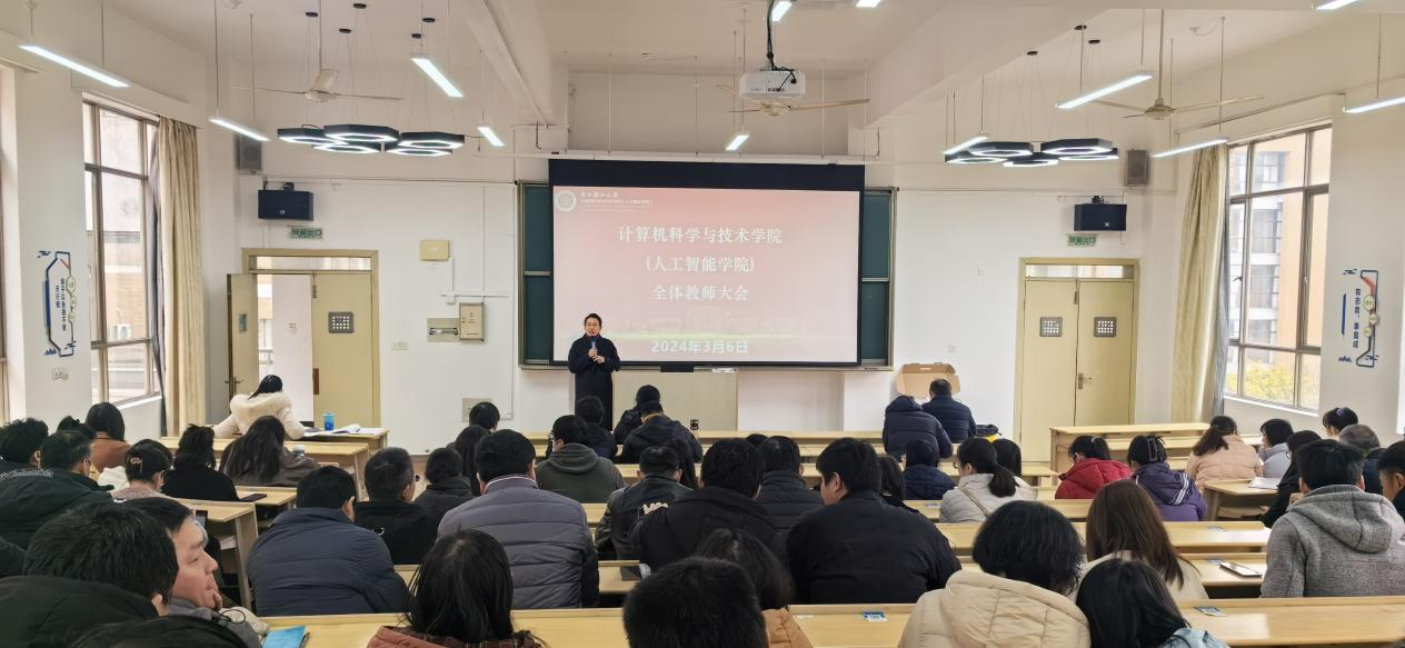 3月6日下午,计算机科学与技术学院(人工智能学院)召开全院教师大会,部署新学期各项工作,会议由学院党委书记黄黎主持,学院领导班子成员、全体教师参加会议。