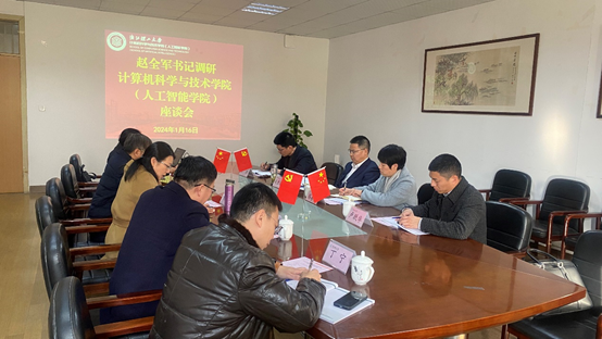 2024年1月16日下午,校党委书记赵全军带队到计算机科学与技术学院(人工智能学院)调研指导工作,学校办公室、学科建设处负责人陪同调研,学院党政班子成员参加调研座谈会。