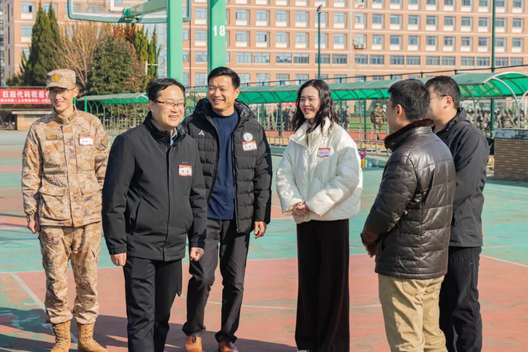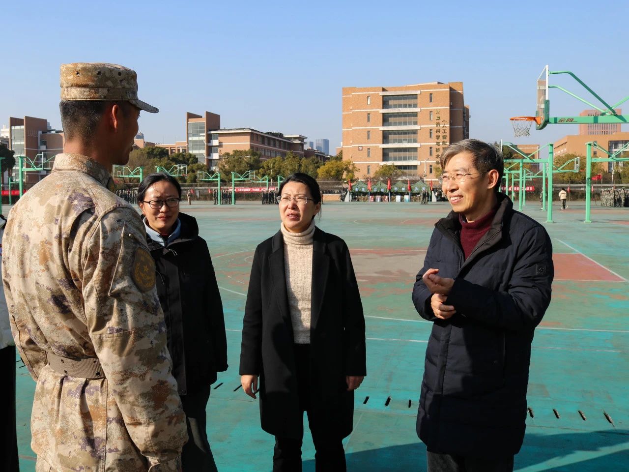 1月17日上午,为充分了解23级本科生军训情况,进一步关注学生思想动态,保证军训工作有序进行,我校党委副书记、军训师政委缪鲁加,军训师副师长张毅,体育教研部(军训工作部)书记惠悲荷、副主任邹学芝来我院军训营地进行视察指导。