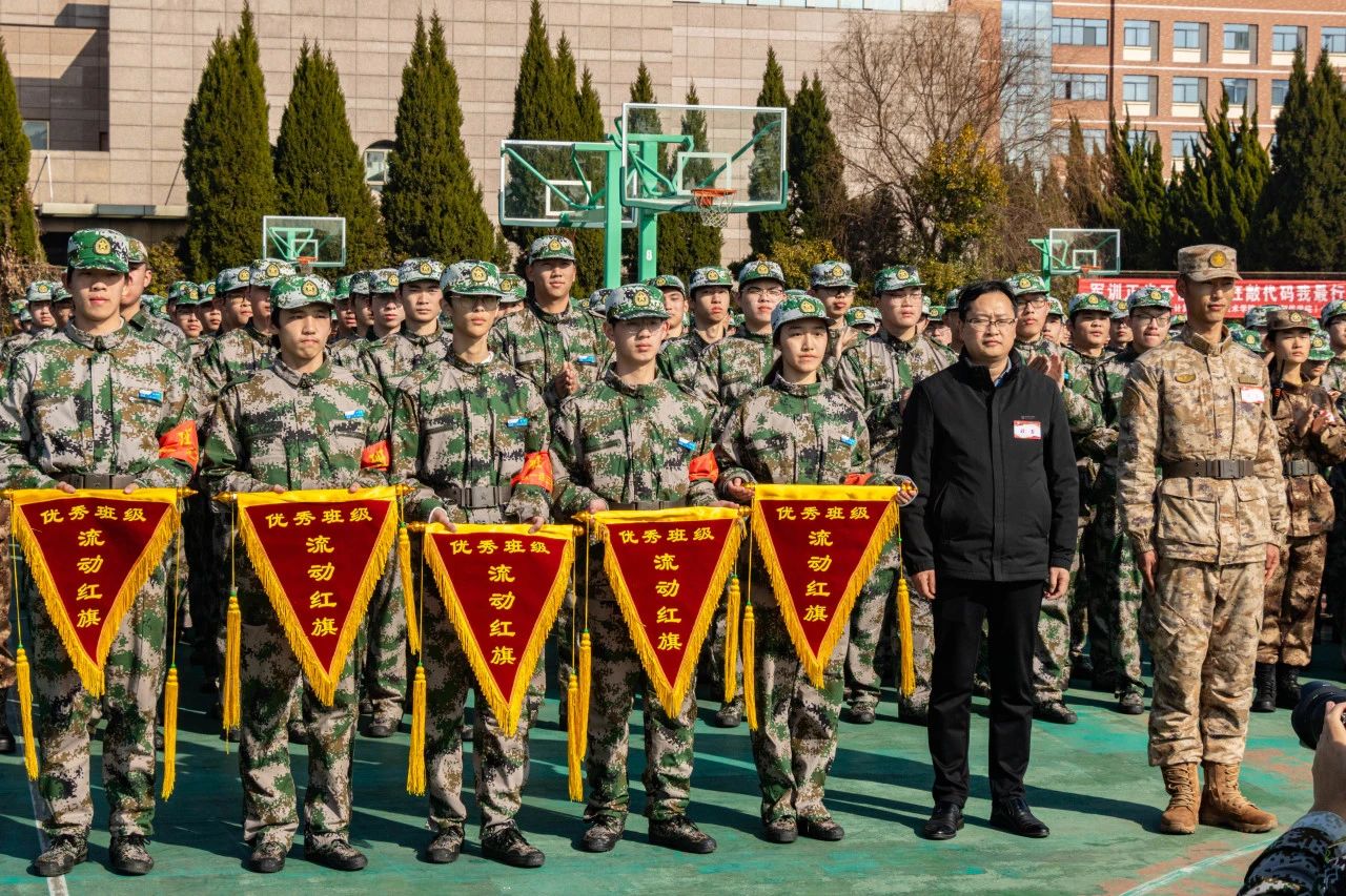 随后,缪书记为我营军训期间表现优异的班级颁发流动红旗,表扬了我院同学态度端正、训练刻苦、严守纪律、服从组织,认真进行国防教育管理和服务保障等方面的工作,同时强调了军事训练对磨炼个人意志,培养集体意识,推动学风校风建设,落实党的强军思想有重大意义,希望同学们在接下来的训练中再接再励,发扬严于律己,勇于拼搏的精神,践行我校厚德致远、博学笃行的校训,立志强军报国,以更加执着、顽强、坚毅、果敢的姿态面对未来更多的挑战。