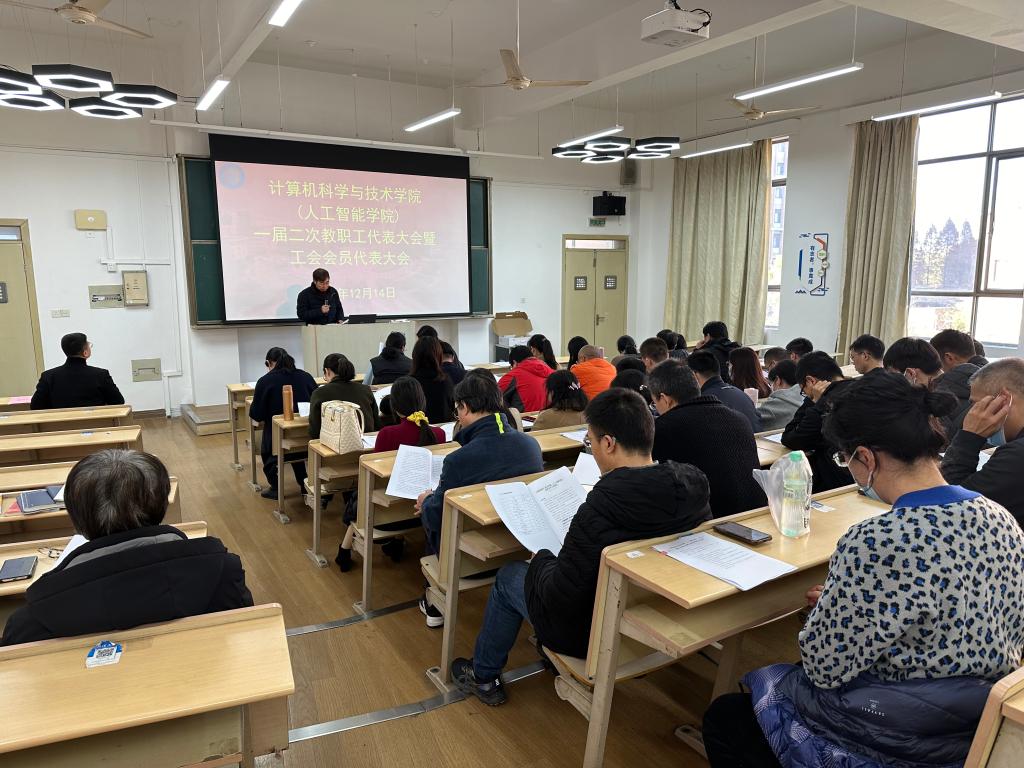12月14日下午,tyc33455cc太阳集团成网官方入口计算机科学与技术学院(人工智能学院)召开了一届二次教职工代表大会暨工会会员代表大会。学院党政领导班子成员、学院分工会和教职工代表40余人参加会议。会议由学院党委副书记丁宁主持。
