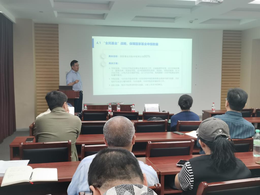 讲座之后,由学院副院长蒋明峰主持了2024年国家自然科学基金申报启动会,首先介绍了我院2023年国自然申报与中标情况,对未中标项目专家反馈意见进行了分析;其次,分享了国家基金资助体系及相关政策;最后,重点介绍了2024年国家自然科学基金申报工作方案和时间节点。同时强调,为提高专家辅导效率、提升标书质量,要求申请人充分重视基金申报工作。