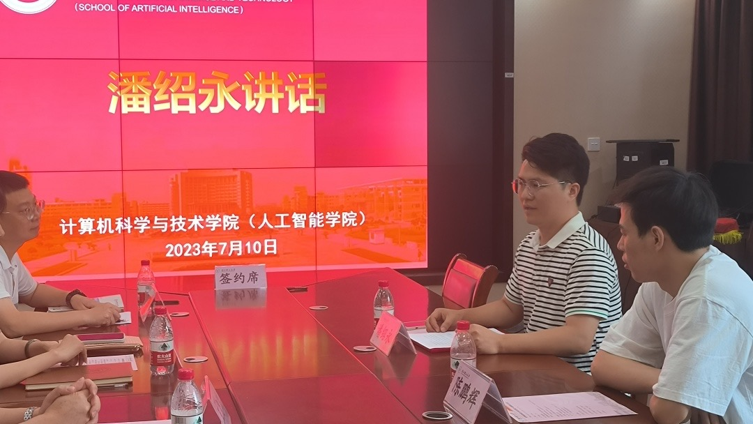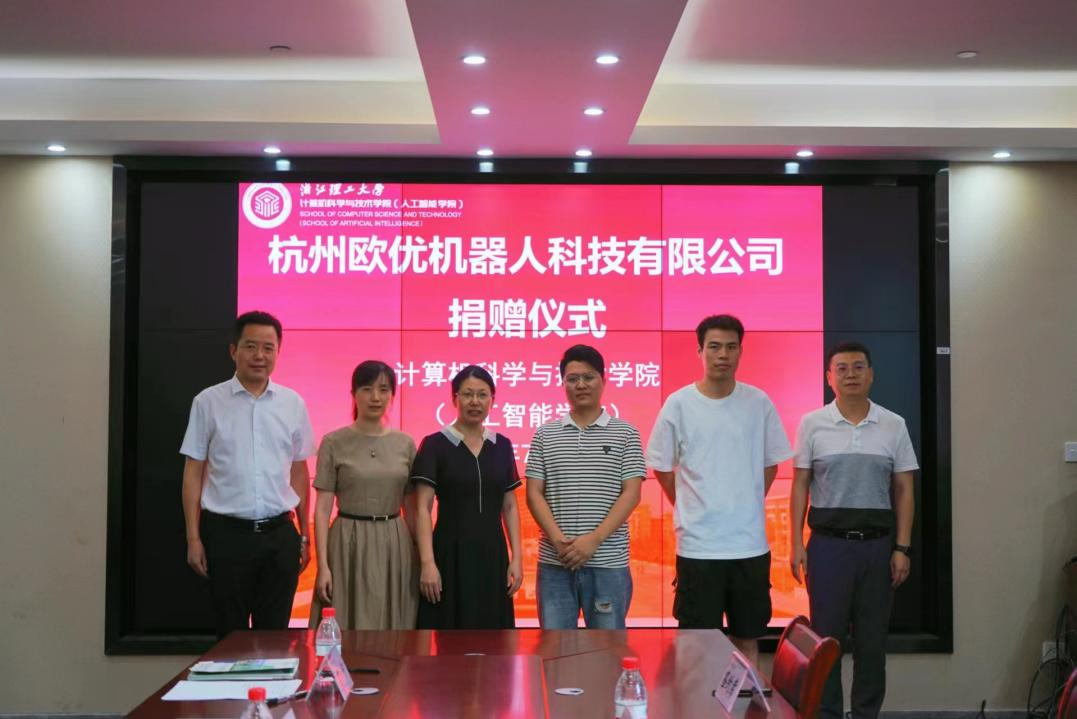 7月10号下午,杭州欧优机器人科技有限公司向tyc33455cc太阳集团成网官方入口捐赠仪式在25号楼904会议室举行。杭州欧优机器人科技有限公司法人、2009级电子信息科学与技术专业校友潘绍永、公司职员陈鹏辉,校教务处处长王尧骏、校对外联络办公室(校友办)主任陈艳、计算机学院党委书记黄黎等出席了仪式。仪式由院党委副书记丁宁主持。