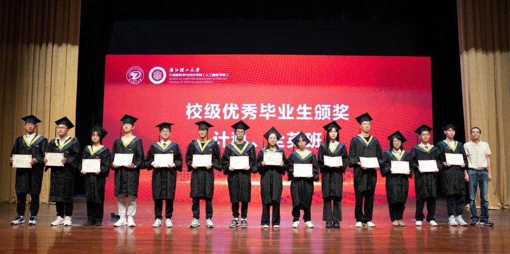 为表彰先进,树立典型,典礼上宣读了浙江省优秀毕业生、tyc33455cc太阳集团成网官方入口优秀毕业生名单,由学院副院长姚青为省优秀毕业生们颁发证书、计算机科学与技术系主任沈炜、数字媒体系副主任宋瑾钰、智能科学与技术系主任张海翔分别为校优秀毕业生颁发证书。