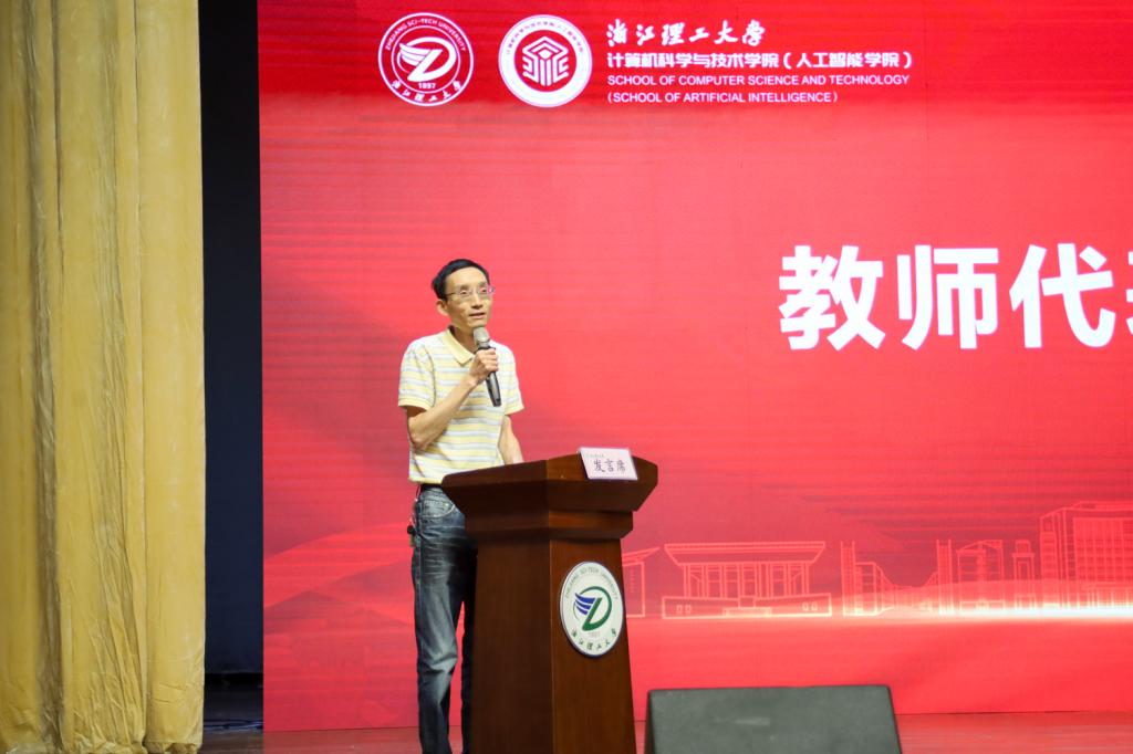 浙江教育年度影响力人物、计算机系主任沈炜教授作为教师代表发言,他从ChatGpt和文心一言切入,和毕业生们共同畅想了人工智能的未来发展和我们的前景使命,并提出了三点希望,希望大家保持好的身体状态,保持生活中的不确定性、保持对技术的谦逊态度。