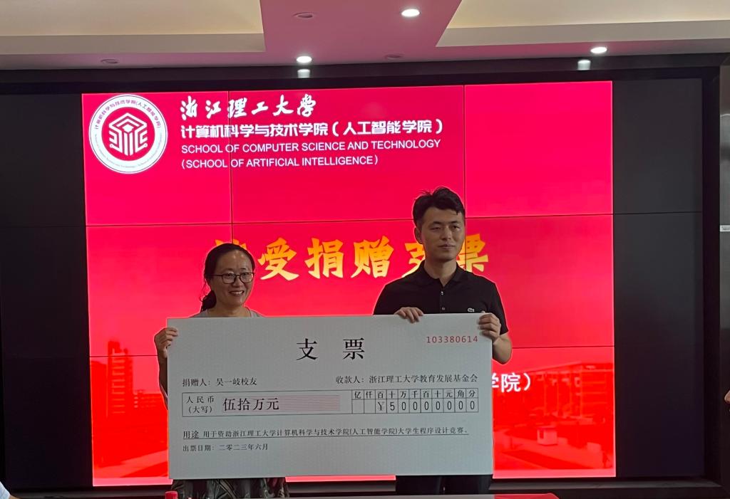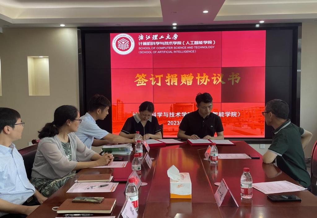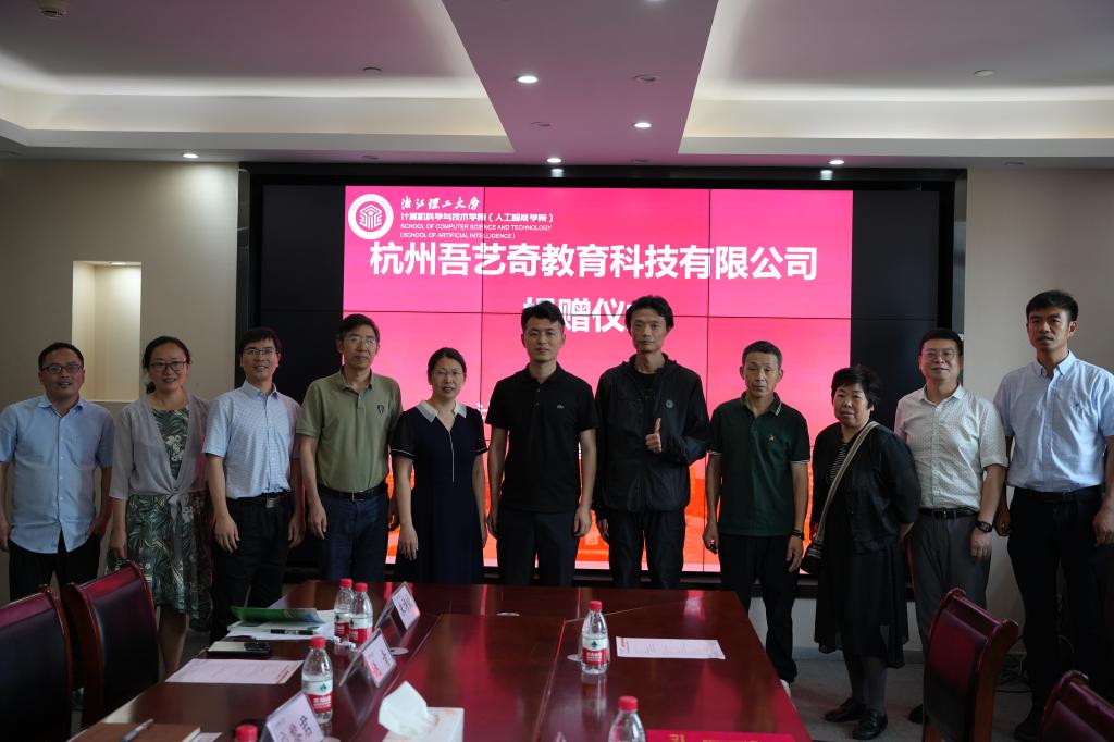6月14日下午,杭州吾艺奇教育科技有限公司向tyc33455cc太阳集团成网官方入口教育发展基金会捐赠仪式在25号楼904会议室举行。杭州吾艺奇教育科技有限公司创始人、2010级计算机科学与技术专业校友吴一岐及家属、总经理助理杜洋,校对外联络办公室(校友办)副主任应黎君、计算机学院党委书记黄黎、院长丁佐华、副院长姚青、院党委副书记丁宁、计算机系专业教师叶海荣等出席了仪式。仪式由院校友联络中心主任朱诗威主持。