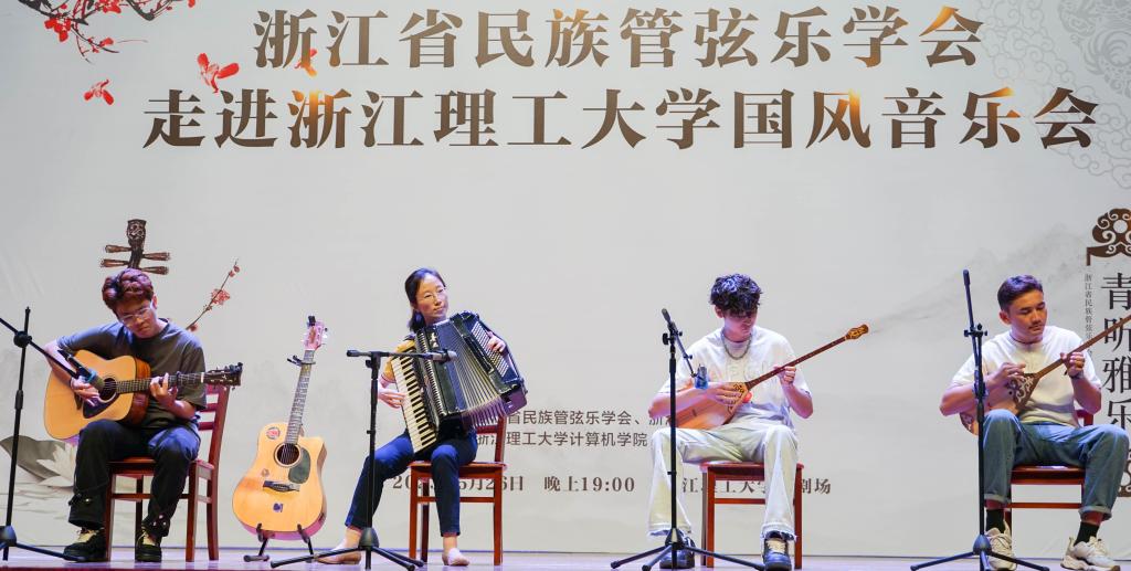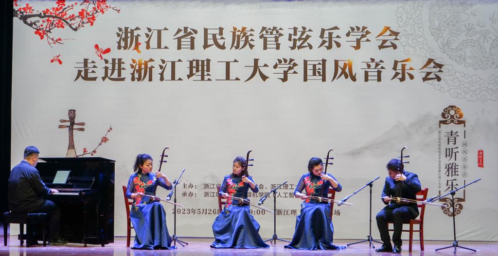 5月26号晚上,“青听雅乐”国风音乐会在学生活动中心小剧场内正式拉开帷幕。浙江省民族管弦乐学会走进校园,携手浙理师生,带来一场视听盛宴。到场观看音乐会的有兄弟高校学者专家,企业领导,校友,学校教职工和同学们。