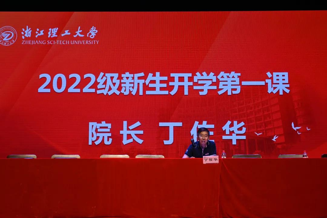 院长丁佐华为全体新生上开学第一课。他首先向新生的到来表示祝贺,并指出,来到大学后要有更多的责任、包含和付出。一是认清自我、认真规划、做好定位。二是做好自己,提升自学能力和自控力。三是学会享受挫折,从挫折中进步与升华。四是积极发展特长,提升自我,相互学习,了解团队合作的重要性。