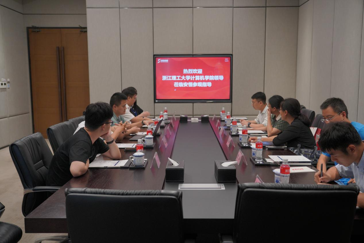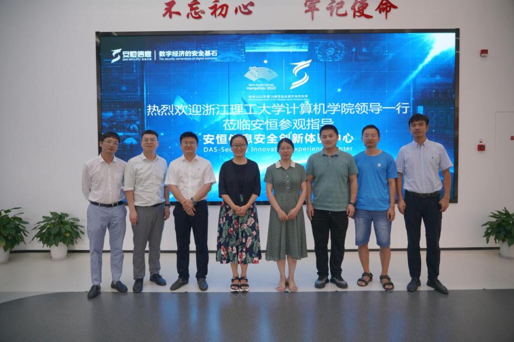 为贯彻落实教育部“访企拓岗促就业”专项行动,进一步深化校企合作、产教融合工作,挖掘就业资源。7月25日下午,计算机科学与技术学院党委书记黄黎、副院长姚青、副书记丁宁、数字媒体系主任舒挺、学工办主任朱诗威一行前往杭州安恒信息技术股份有限公司进行走访调研活动。安恒信息副总裁、数字人才创研院副院长吴鸣旦,人力资源部总监吴澄、营销中心销售总监彭实、人力资源部校招经理王月、校友代表于谦热情接待并参加座谈。