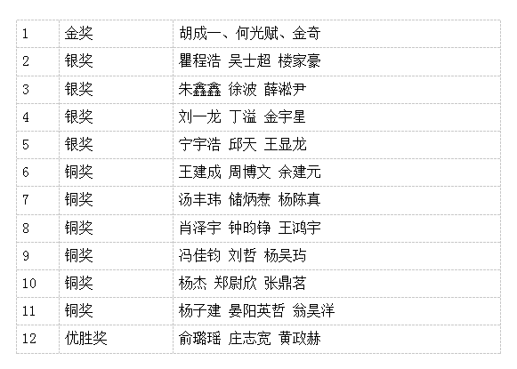在国际大学生程序设计竞赛(英文全称:International Collegiate Programming Contest,简称ICPC))中,我校瞿程浩(队长)、吴士超、楼家豪组成的队伍获得了铜奖。该赛事是由国际计算机协会(ACM)主办的一项旨在展示大学生创新能力、团队精神和在压力下编写程序、分析和解决问题能力的年度竞赛,经过四十余年的发展,ICPC国际大学生程序设计竞赛已经发展成为全球最具影响力的大学生程序设计竞赛。