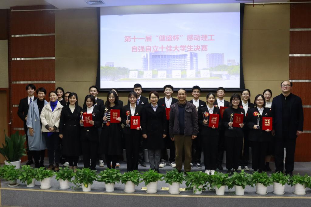 经现场评选,理学院牛东雷,信息学院王学慧,经济管理学院严静雯,建筑工程学院崔合飞,服装学院王若雯,启新学院、创业学院姚睿,信息学院徐贵鑫,法政学院、史量才新闻与传播学院杨硕,生命科学与医药学院方元春,纺织科学与工程学院吴颖颀获得“第十一届‘健盛杯’感动理工自强自立十佳大学生”荣誉称号。机械与自动控制学院时启兵、材料科学与工程学院宋世奇、理学院张艳玉、信息学院唐绍鹏及法政学院、史量才新闻与传播学院张顺朋获得提名奖。同时,经前期微信公众号平台展示投票,服装学院的王若雯获最佳人气奖。