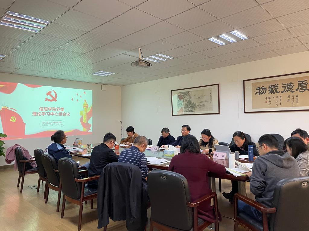在“两个一百年”奋斗目标的历史交汇期,党的十九届六中全会审议通过《中共中央关于党的百年奋斗重大成就和历史经验的决议》。会议伊始,与会成员共同观看中共中央新闻发布会直播,学习了中国共产党第十九届中央委员会第六次全体会议公报。随后,学院领导班子成员丁佐华、姚青、包新春分享了学习心得。院长丁佐华指出《决议》全面总结党的百年奋斗重大成就和历史经验,体现了我们党重视和善于运用历史规律的高度政治自觉,我们要继续深入学习会议精神,不断联系工作实际,做出新的更大贡献,以优异成绩迎接党的二十大召开。副院长姚青指出,要坚定“四个自信”,增强“四个意识”,做到“两个维护”,紧紧围绕在党中央周围,凝心聚力干事业。院党委副书记包新春指出,要坚定“四个自信”,进一步提升工作竞争力;创新方式方法,进一步提升思想引领力;坚持以生为本,进一步提升师生向心力。此外,通信教工党支部书记吴呈瑜、计算机技术研究生第二党支部书记贾向毅也分别就此次学习分享了学习心得。