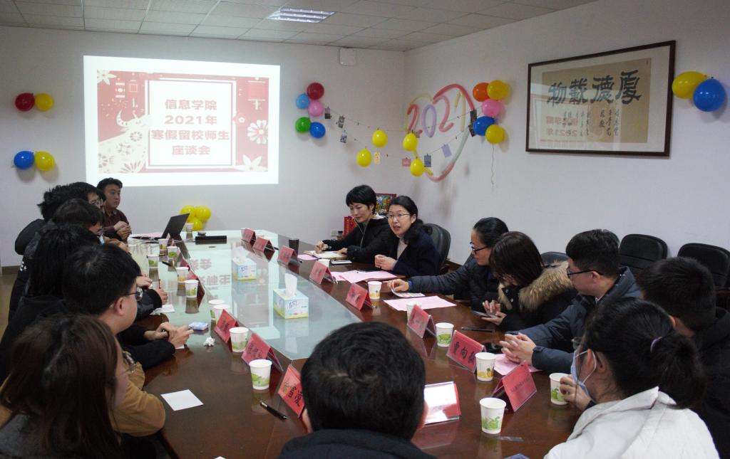 2月5日上午10点30分,我院在10-315会议室举行2021年寒假留校过年师生座谈会。学院党委书记黄黎、副院长姚青、党委副书记包新春出席了本次活动。活动由党委委员、学工办主任尹小虎主持。