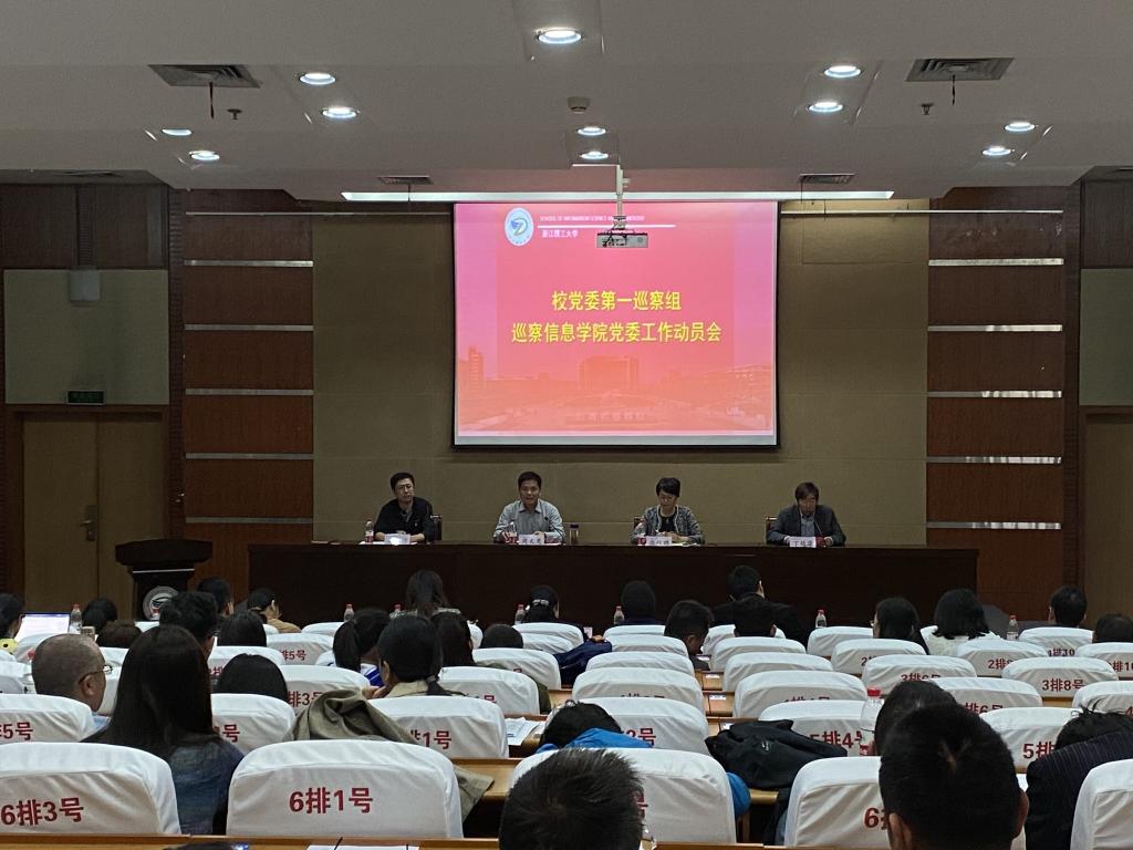 10月26日下午,校党委第一巡察组巡察信息学院党委工作动员会在行政楼二楼报告厅召开。党委第一巡察组组长、校党委副书记周文龙,校党委巡察办主任张信群、巡察组副组长龚素瓅、联络员高山以及全体巡察组成员出席会议。信息学院全体教职工、近三年调离或退出领导岗位的原班子成员、学生党支部书记等参加会议。动员大会由信息学院院长丁佐华主持。