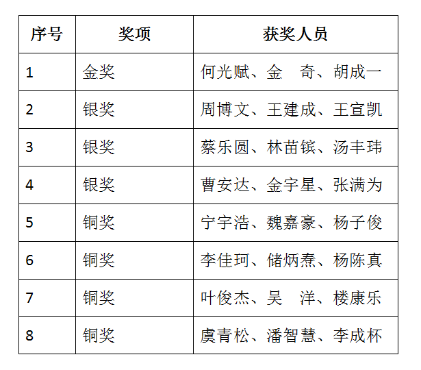 10月17日,由浙江省大学生科技竞赛委员会主办的第17届浙江省大学生程序设计竞赛赛在线上举行。本次比赛,全省共有来自近80所高校的约350支队伍参赛。我院8支队伍全部获奖,摘得一金三银四铜。