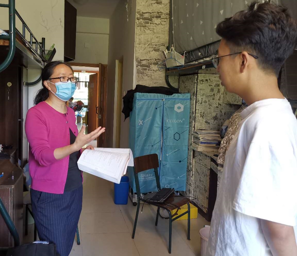 走访过程中,姚青了解到很多毕业班的学生正处于准备毕业论文和就业的关键时期,立即拿起书籍,现场为同学们进行了毕业论文指导,还给同学们在寝室里进行了一场突如其来的“职场模拟面试”,并针对同学们的一些面试技巧、就业注意事项等进行了现场指导。同学们纷纷表示,学院的关怀让他们倍感温暖,承诺在校期间一定会在遵守疫情防控要求的前提下,顺利完成学业,也相信在全国上下的共同努力下,我们定将打赢这场疫情防控阻击战。