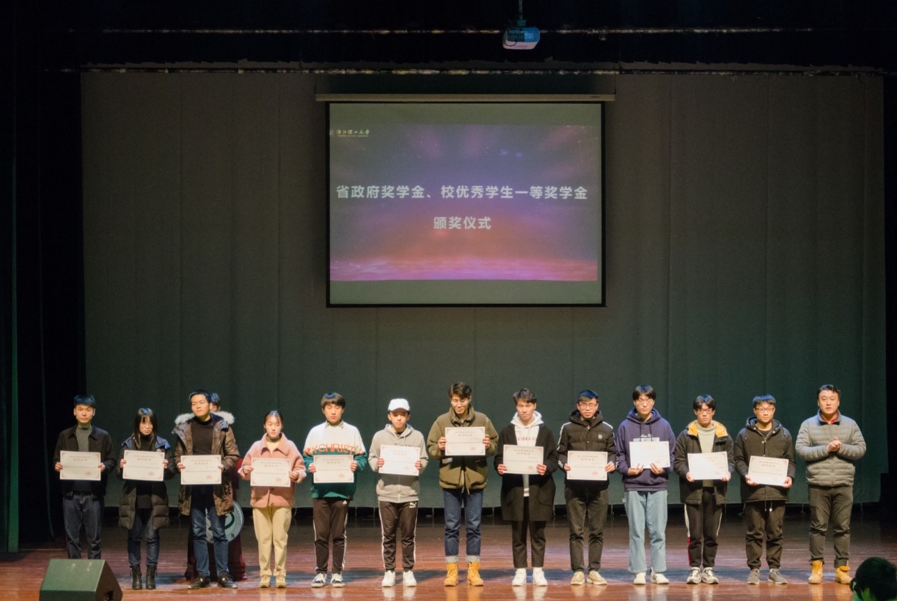 在表彰大会上,主持人公布了奖学金、荣誉称号和先进班级名单。随后,方水明为国家奖学金获得者颁奖,尹小虎为省政府奖学金、校优秀学生一等奖学金获得者颁奖,顾林彬为高数学习先进班级颁奖,卢雯昕为高数学习模范寝室颁奖,徐柳为高数学习标兵颁奖。