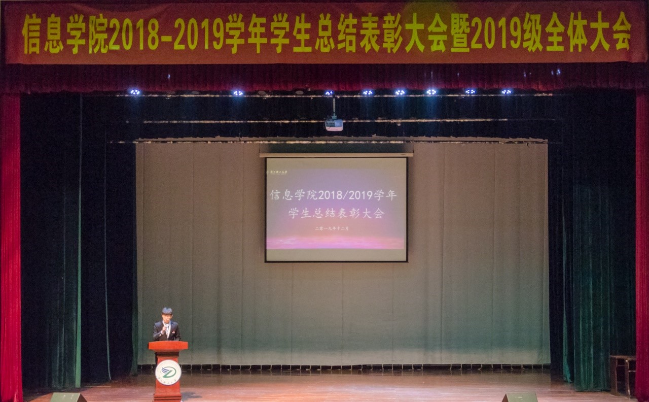 2019年12月27日下午,我院学生总结表彰大会顺利举行。信息学院党委副书记方水明,团委书记、学工办主任尹小虎,18级辅导员顾林彬,19级辅导员卢雯昕、徐柳以及信息学院优秀学生代表出席了本次大会。大会分为表彰大会、2019级学生年级大会两部分。