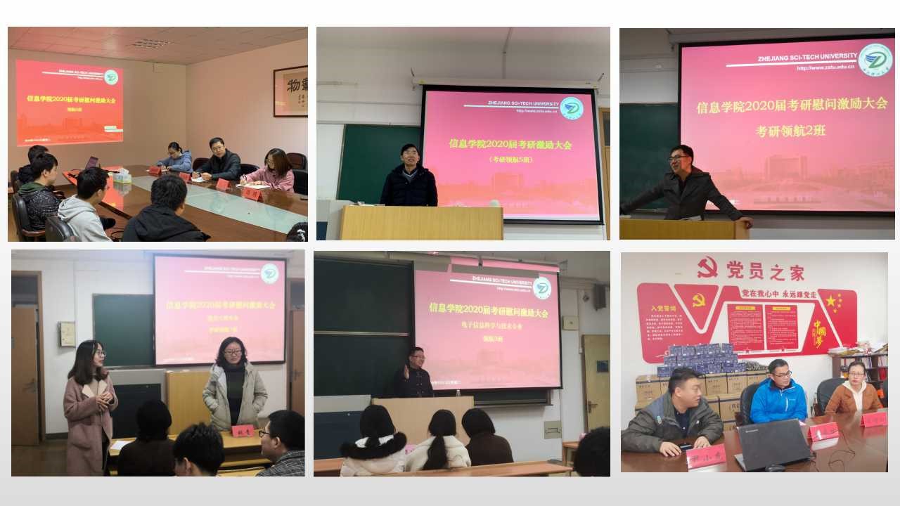 随着2020届考研日益临近,为了鼓舞考生在最后的冲刺阶段的士气,信息学院于12月3日至12月5日分专业召开了考研激励大会,学院党委书记苏志俭,院长丁佐华,副院长蒋明峰、姚青、童基均,党委副书记方水明,各考研领航班导师、班主任,2019届研究生代表以及2020届考研学生参加了大会。