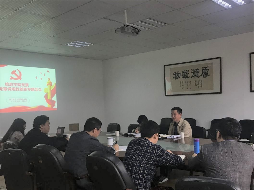 11月7日上午,我院在10号楼315会议室召开党委对照党章党规找差距专题会议。学院党委书记苏志俭主持会议,校主题教育巡回督查组第四组组长王伟、成员葛小琴莅临指导,学院党政班子成员及组织员参加会议。