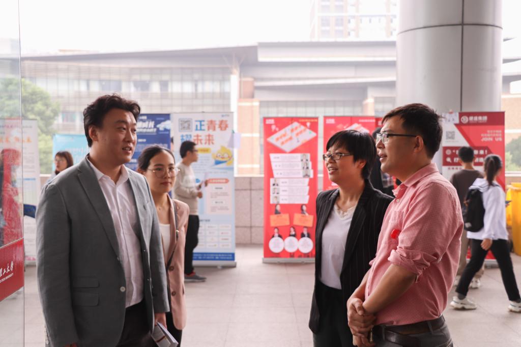 招聘会期间,苏志俭与多家企业负责人进行了深入交谈,表达了学院与企业深入合作,共同谋划校企间产学研协同发展的意愿。方水明、王吴芳就现场情况进行了详细的了解和指导。尹小虎、高君、吴云枭热情接待了金华职业技术学院团队的来访,并与廖任秀深入探讨就业帮扶的措施,双方就推进就业工作达成了多项共识。同时,15级优秀校友金诗怡代表企业来校招聘,与学院交流招聘经验。此次招聘会,汇集多方资源,促进学校、企业和学生之间的有效联结,帮助学生顺利择业、理想就业。