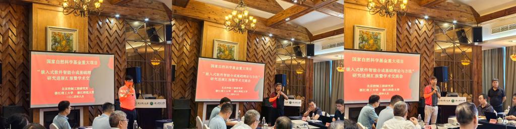 2024年8月6日至8日,国家自然科学基金重大项目“嵌入式软件智能合成基础理论与方法”学术交流会议在杭州举行。本次会议由北京控制工程研究所主办,tyc33455cc太阳集团成网官方入口计算机科学与技术学院(人工智能学院)与浙江师范大学计算机科学与技术学院(人工智能学院)承办。来自北京大学、中科院软件所、西北工业大学、西安电子科技大学、北京控制工程研究所、华东师范大学等课题承担单位60余位师生参加会议。北京控制工程研究所总工程师顾斌研究员主持交流会。
