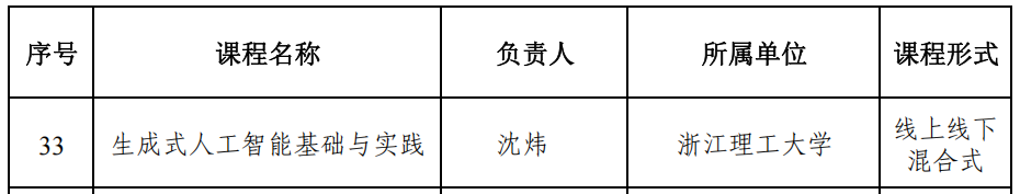 近日,浙江省教育厅发布《关于2025年省级一流人工智能通识课程及省级一流人工智能通识国际化课程拟立项名单的公示》。经评审,全省39所高校共计66门课程入选省级一流人工智能通识课程拟立项名单,我院2门课程成功入选(我校共入围3门)。