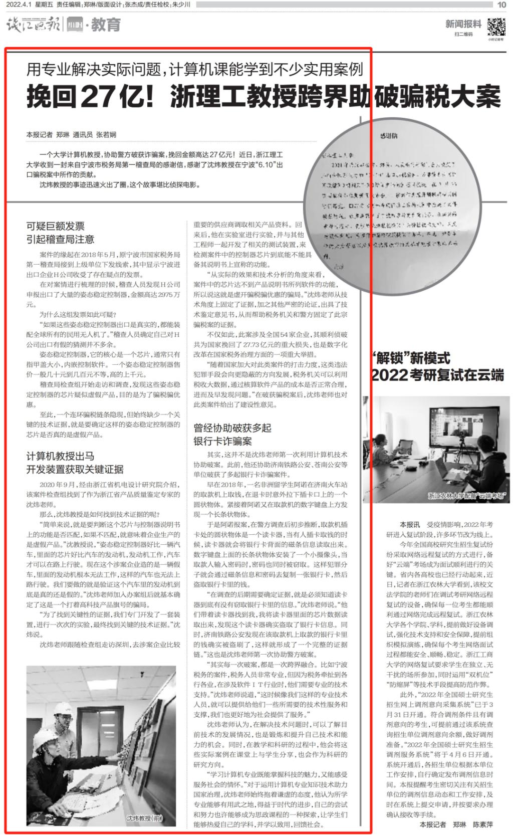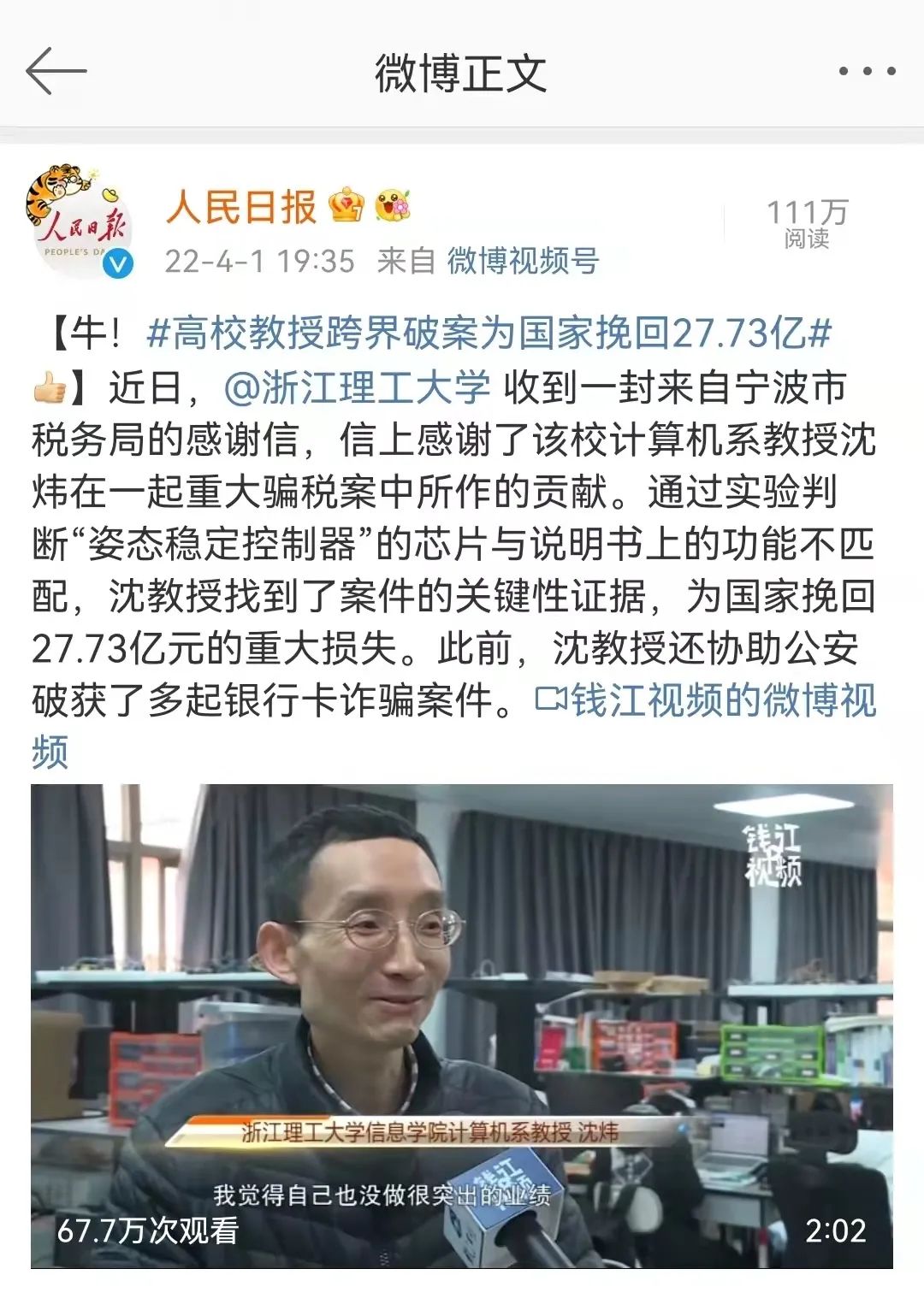 人民日报、新华社、光明日报、中国青年报、中国科学报钱江晚报报道我院沈炜教授协助破获出口骗税案件,金额高达27.73亿元