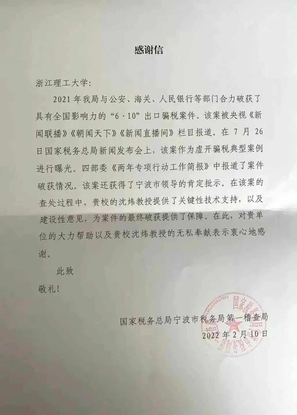 近日,一封来自宁波市税务局