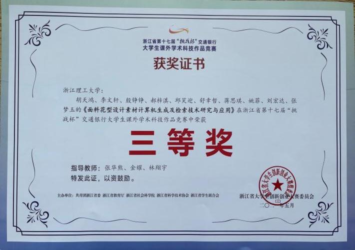 近5年成绩: 获得国赛铜奖1项,省赛金奖1项,银奖2项,铜奖3项。